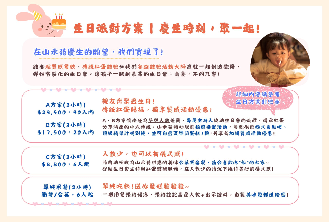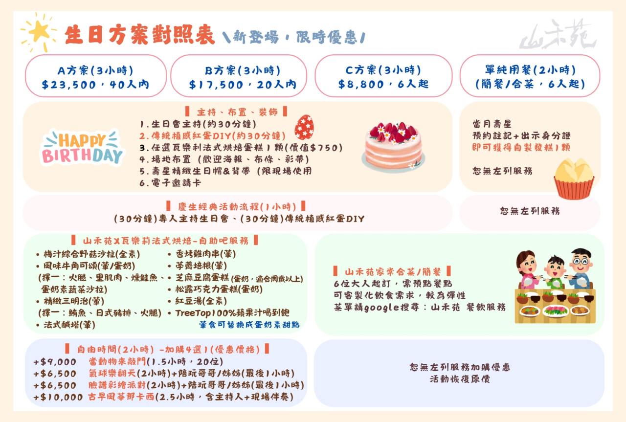 C方案(3小時) 6位大人起,餐飲請另制訂席服務預約餐點 (+NT$8,800)