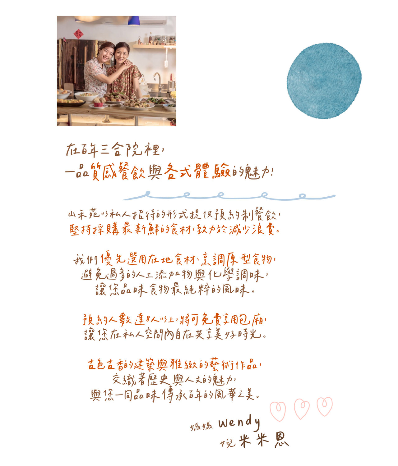 我們這次去是品嘗無菜單料理,採預約制。預約時就能先告知會過敏或不能吃的食材。服務非常好又親切外,每一口都能品嘗到廚師的用心和滿滿台灣的家鄉味。這裡我就只po出幾道佳餚的照片,其他道就先不破梗,由大家自己來探索它的美味❤️山禾苑團隊堅持不用味素,食材真材實料又新鮮,自己去菜市場都買不到這麼肥美的虱目魚。每道菜上桌時都伴隨著大家驚豔的讚嘆聲。用心翻修、布置的三合院更是為這場美食饗宴大大加分,實在是場精采的台灣特色體驗!