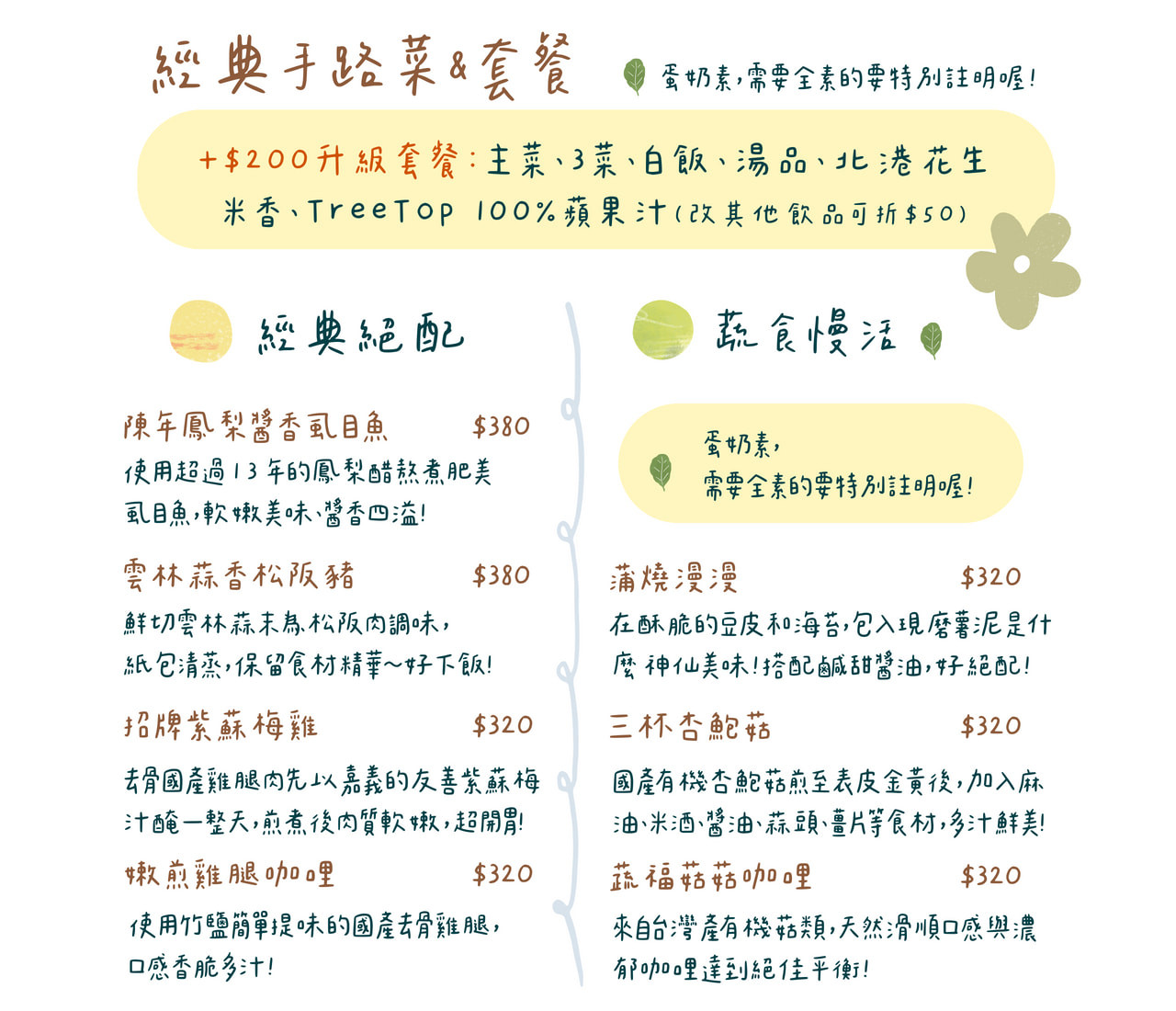 不定期調整菜色,留住每一口豐美的滋味