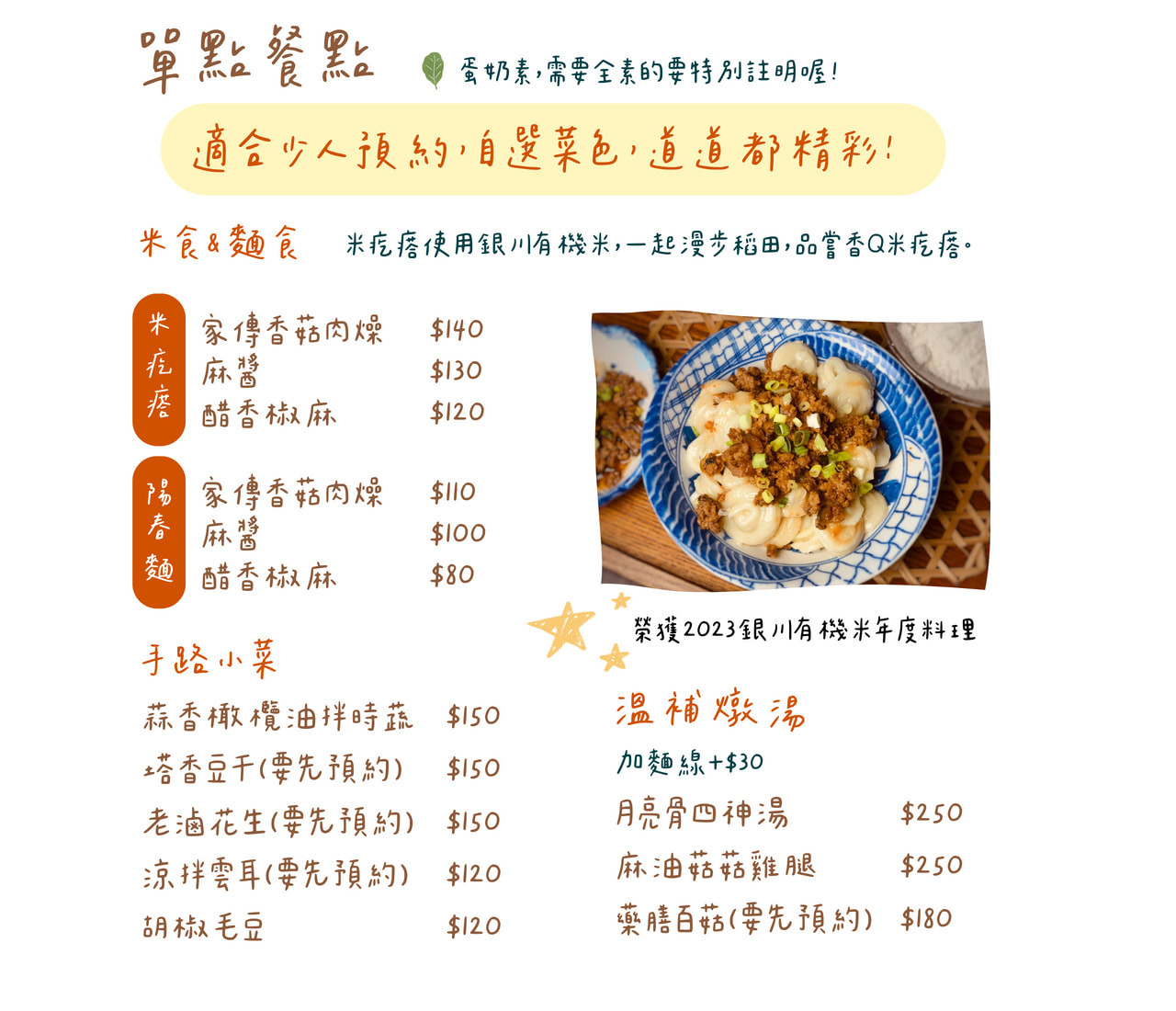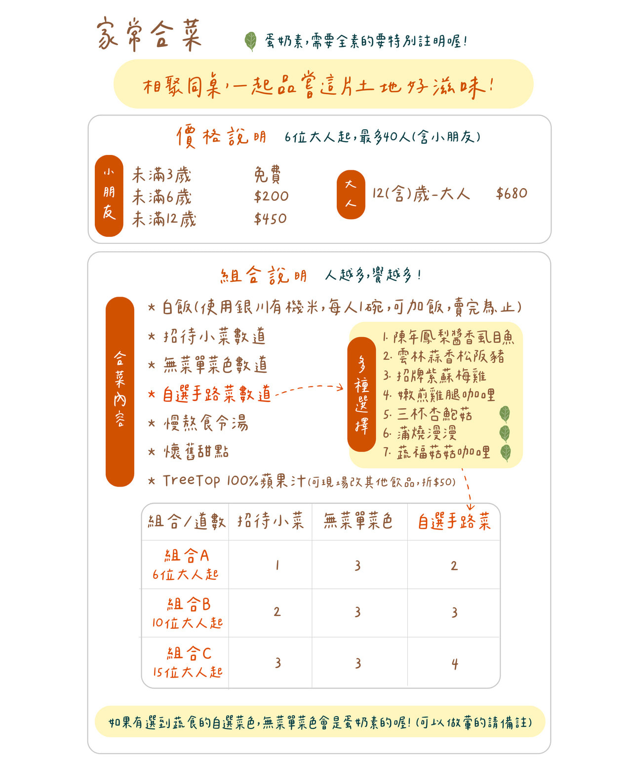 套餐、合菜、單點與客製化服務